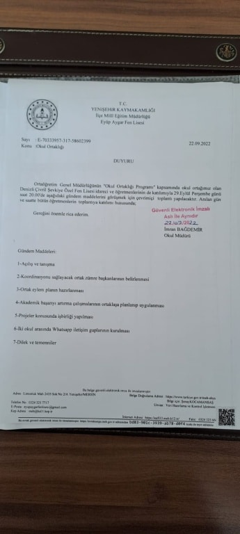 2. Ortağımız olan Eyüp Aygar Fen Lisesi ile Tüm öğretmen ve idarecilerimizin katılmış olduğu çevrim içi toplantı yapıldı.