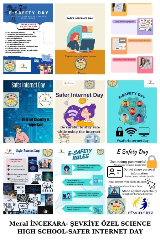 SAFER INTERNET DAY (Güvenli İnternet Günü) kapsamında öğrencilerimiz web araçlarını kullanarak güvenli internet kuralları ile ilgili video ve poster hazırladılar. E-Twinning panosu günün anlam ve önemine göre tasarlandı.