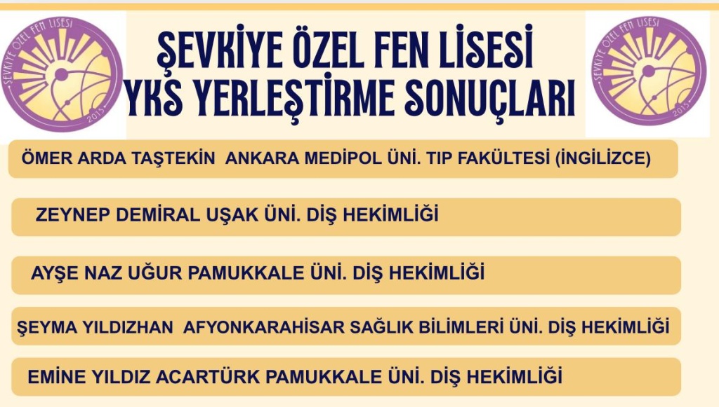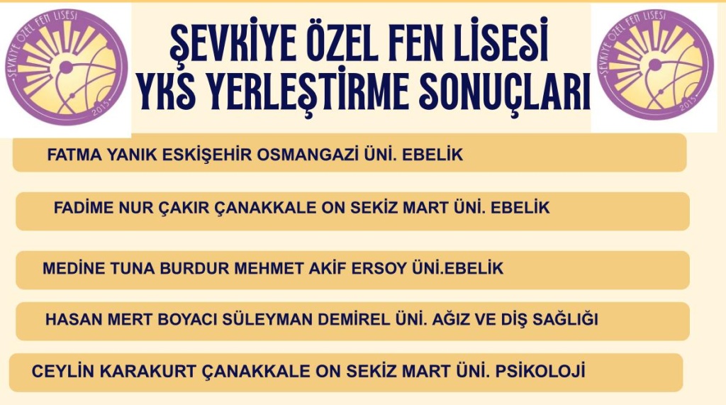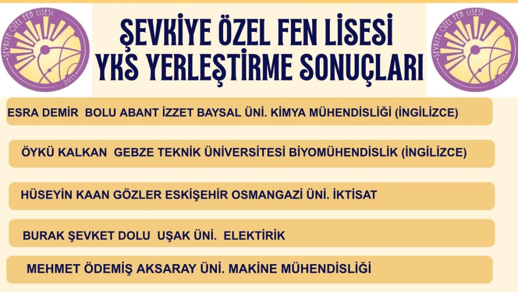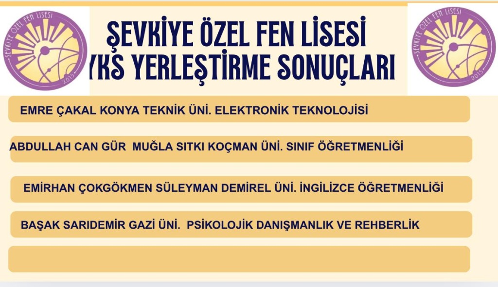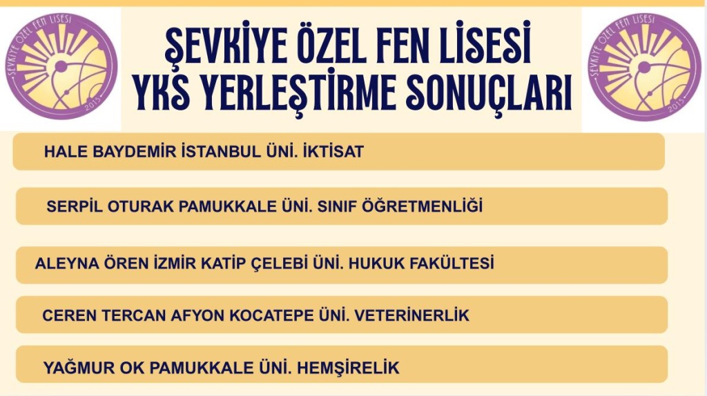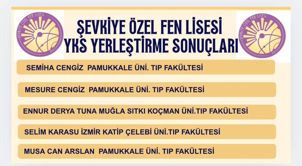 ŞEVKİYE ÖZEL FEN LİSESİ 2025 YKS YERLEŞTİRME SONUÇLARIMIZ